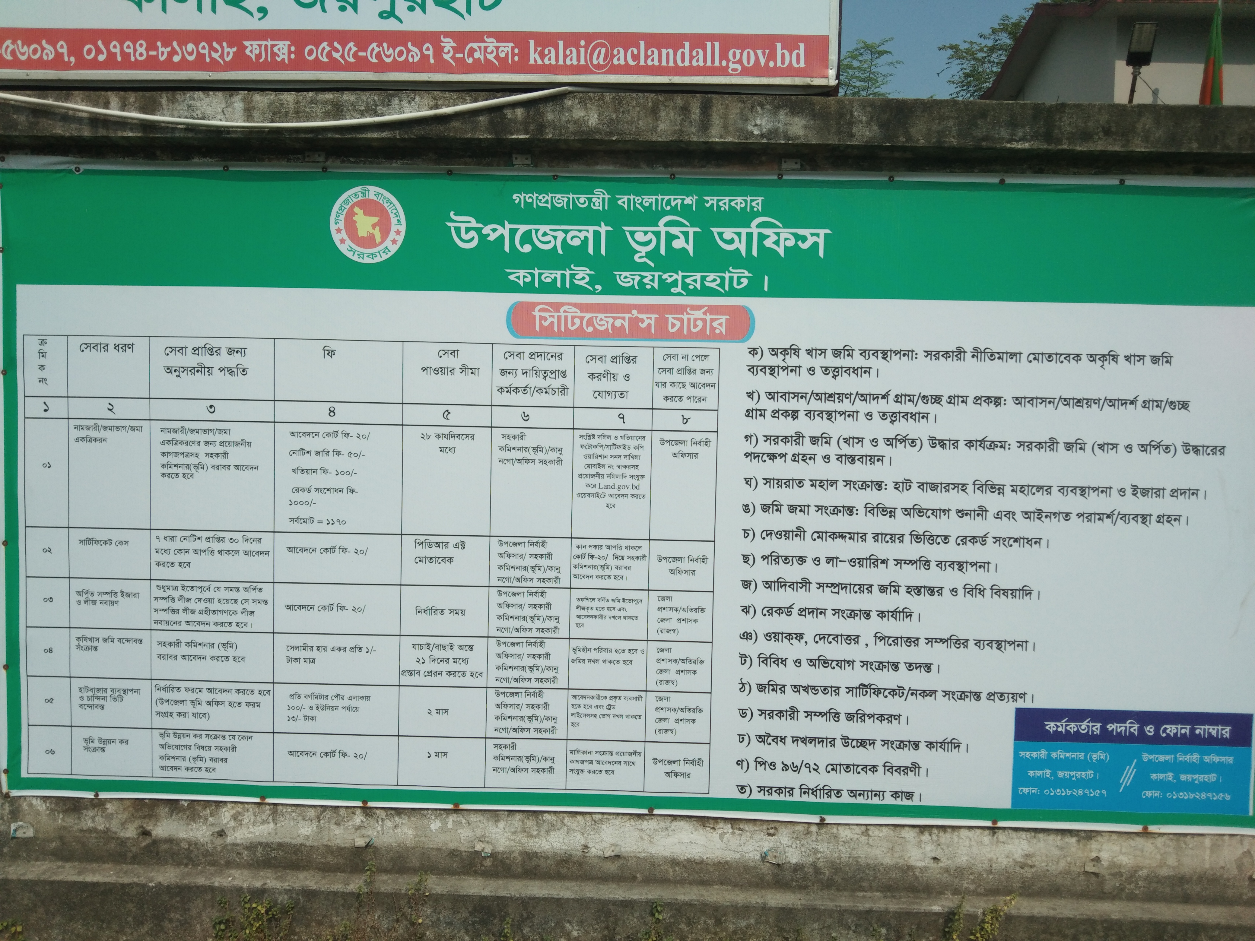 উপজেলা ভূমি অফিসের সিটিজেন চার্টার